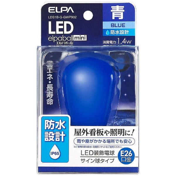 | 商品名 | LED電球 防水仕様 サイン球形 LEDエルパボールmini ブルー LDS1B-G-GWP902 [E26 /青色 /1個] |