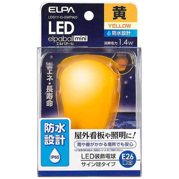 | 商品名 | LED電球 「LEDエルパボールmini」(サイン球形[防水仕様]・1.4W/黄色・口金E26) LDS1Y-G-GWP903 |
