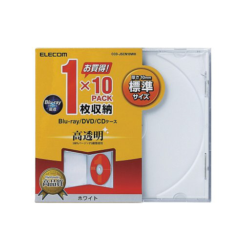 CD/DVD/Blu-ray対応収納ケース (1枚収納×10セット・ホワイト) CCD-JSCN10WH
