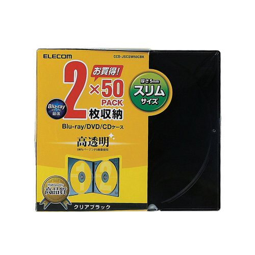 CD/DVD/Blu-ray対応収納スリムケース (2枚収納×50セット・クリアブラック) CCD-JSCSW50CBK
