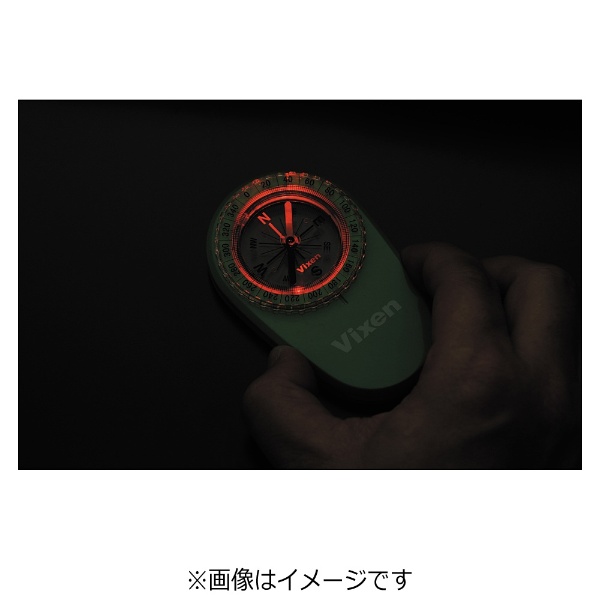 本体横のボタンを押すと、まぶしさの少ない赤色LEDが点灯し、コンパス内部を照らします。指針がふらつきにくく、衝撃に強いオイル式(コンパス内部にオイルを封入)を採用。