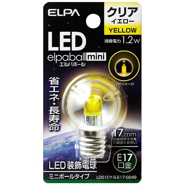 | 商品名 | LED装飾電球 「LEDエルパボールmini」(ミニボール電球形[G30形]・1.2W/黄色・口金E17) LDG1CY-G-E17-G249 【864】 |
