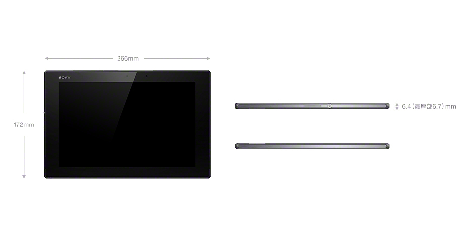 Xperia Z2 Tabletは、約10.1インチの大画面を搭載しながら一世代前のモデルよりも約0.5mm薄くし、約14%の軽量化を達成しました。