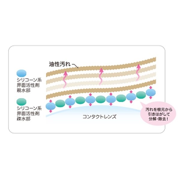 化粧品などの油性汚れを浮き上がらせて分解・除去。