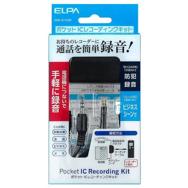電話機と受話器の間に接続し、通話内容をICレコーダー等にモノラル録音できる。