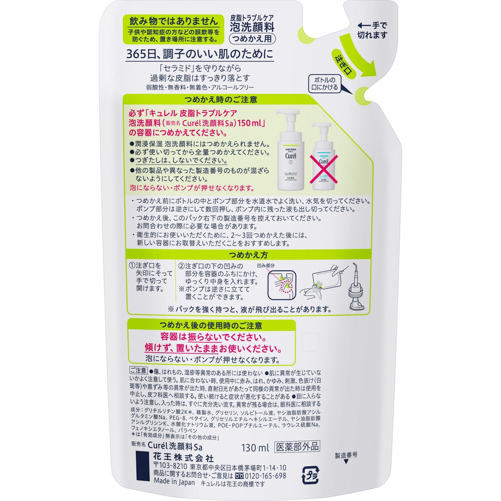 【curel(キュレル)】皮脂トラブルケア泡洗顔料 つめかえ用(130ml)