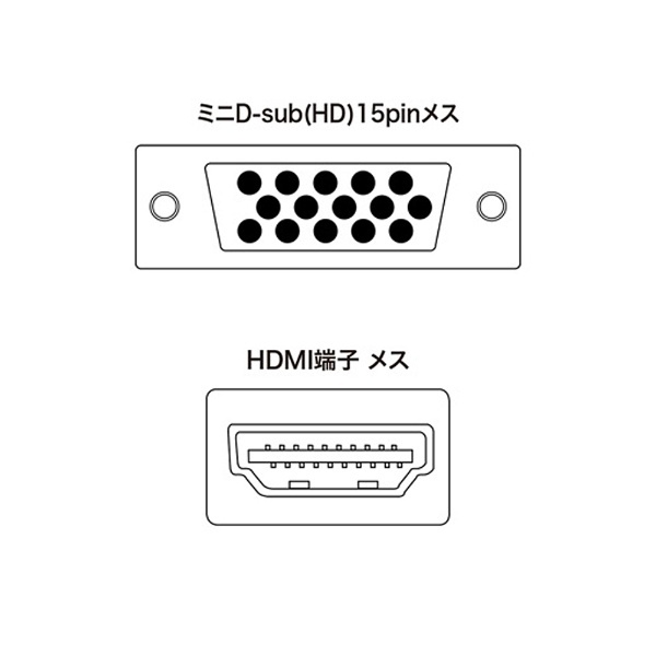 ミニD-sub(HD)15pinアナログ信号(VGA)をHDMI信号に変換できるコンバーター。
