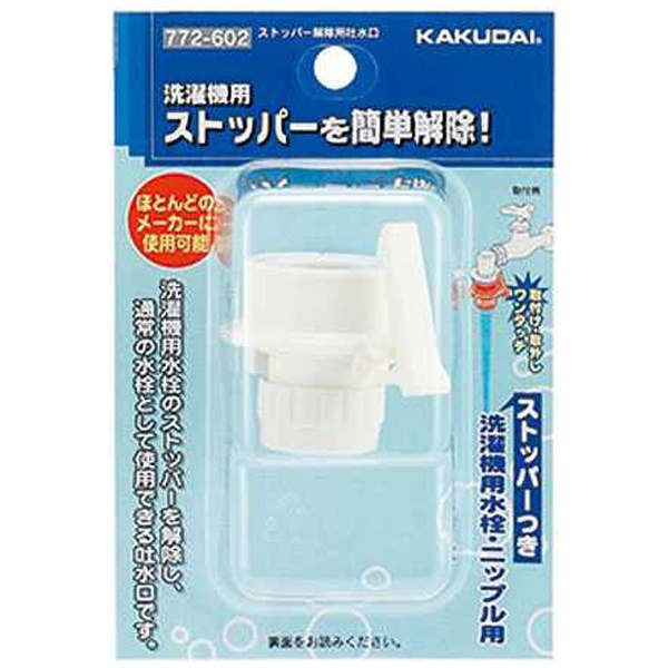 ストッパー付きの洗濯機用ニップルから水を出すことができます。
