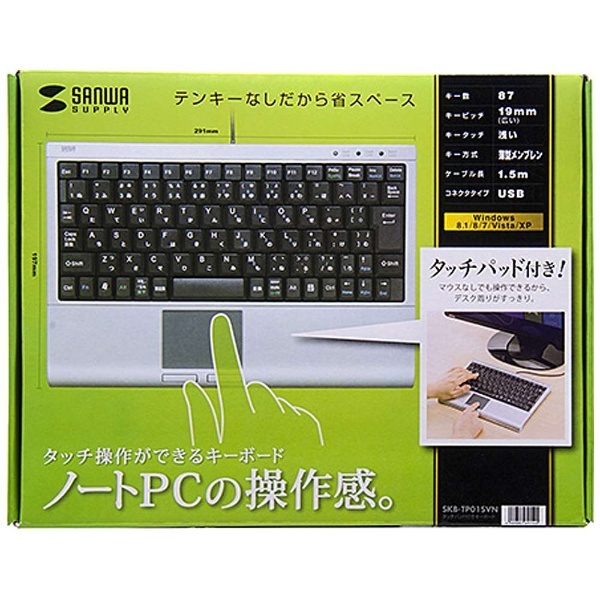 SKB-TP01SVN(シルバー) 有線キーボード[USB] タッチパッド搭載 テンキーなし