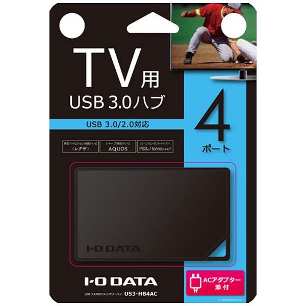 USBハブ対応のAV機器に本商品を接続することで、同時に4台のハードディスクを接続することができるUSB3.0対応のUSBハブ。セルフパワーモデル(ACアダプター添付)。