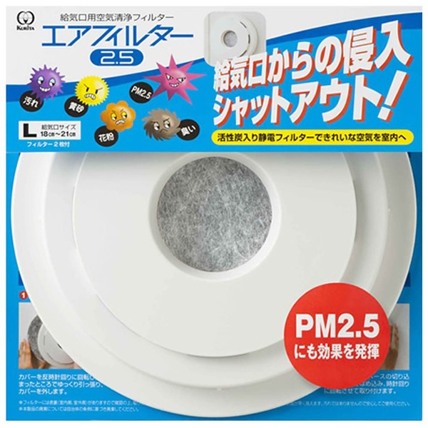 給気口に貼るだけで、外気の汚れを取り除くことができる空気清浄フィルター。丸型給気口用