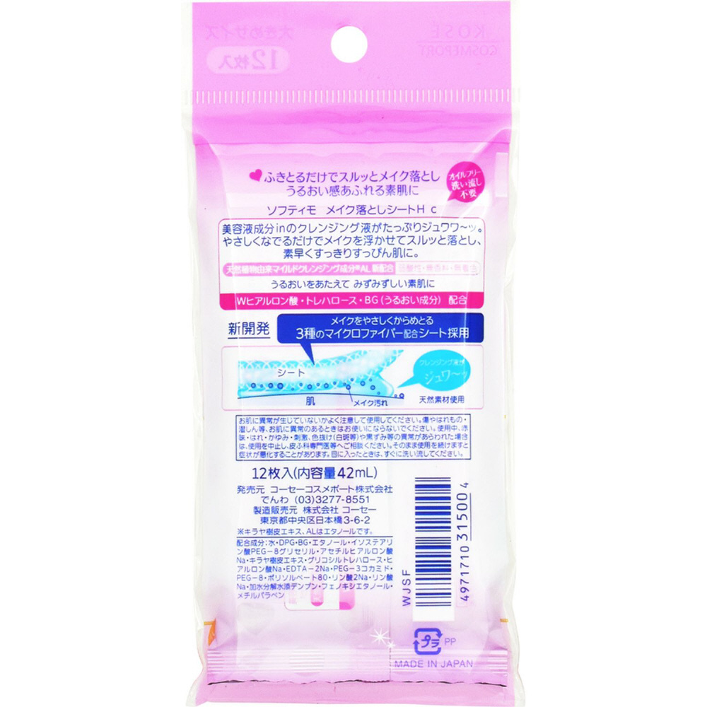 ソフティモ メイク落としシート Wヒアルロン酸配合 携帯用 12枚入