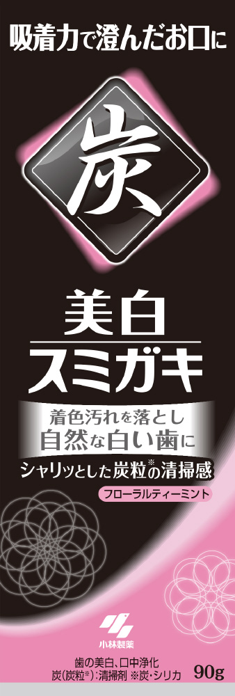 ●歯を傷つけにくい炭粒配合のペーストが着色汚れをしっかり落とし、自然な白い歯にする歯にやさしい美白ハミガキ