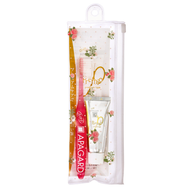 エナメル質を修復する独自成分「薬用ハイドロキシアパタイト」を、Mプラス・スモーキンより高配合したプレミオ20gと、キャップ付きの歯ブラシを付属!