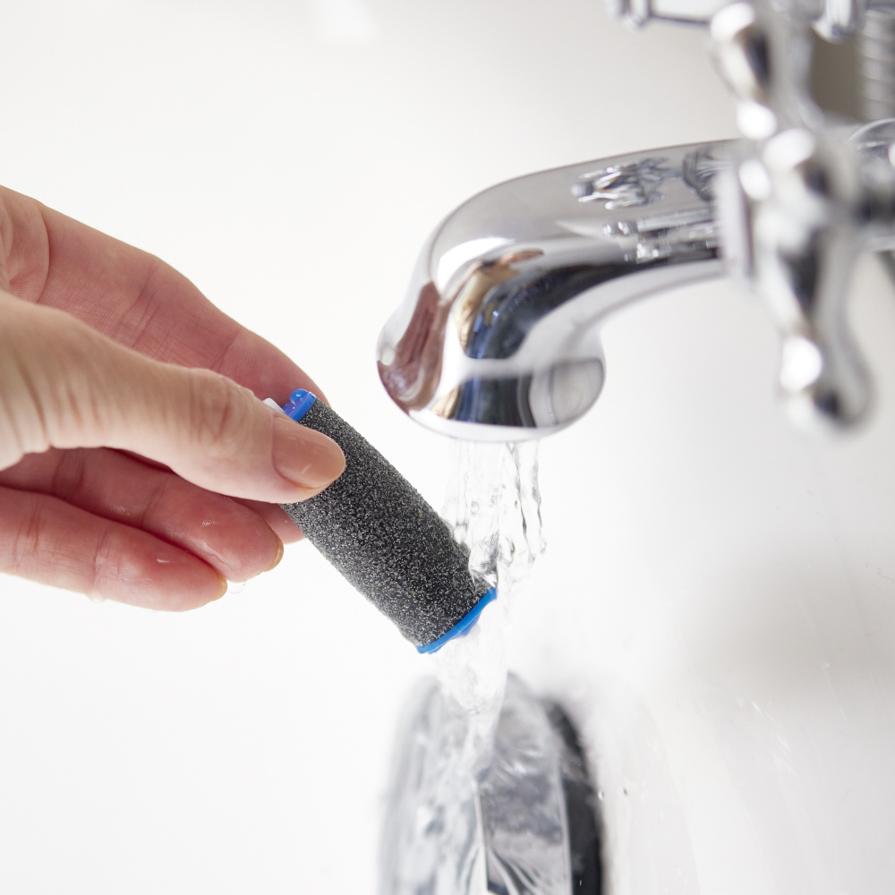 なでるだけ、サロンクオリティ素足。電動のローラーヘッドが高速回転、かたい角質もスピーディーに簡単に除去。仕上がりなめらかなサロンクオリティの素足に。