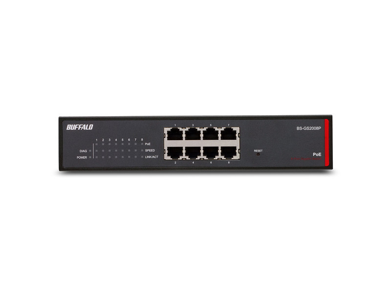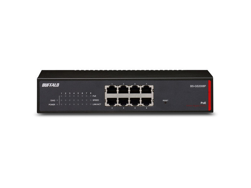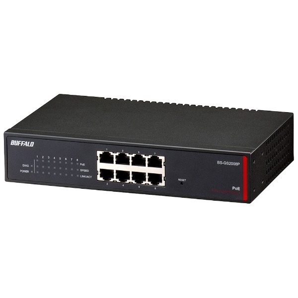 スマートスイッチ(8ポート・Gigabit対応・ACアダプタ)SNMP・PoE給電対応(ブラック) BS-GS2008P