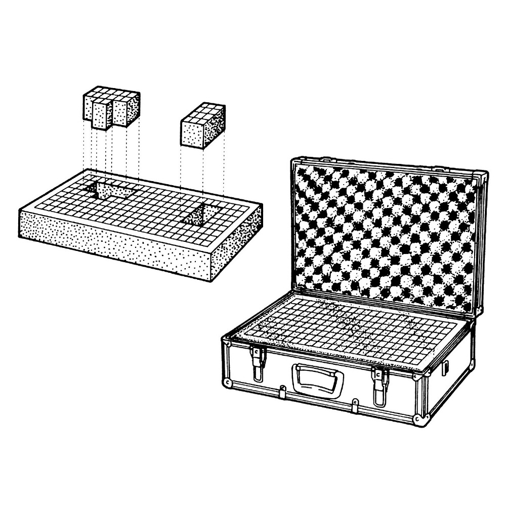 本製品は主にアタッシュタイプのアルミバッグやハードケースなどに使用できるブロック状の切れ目が入ったソフトウレタンです。