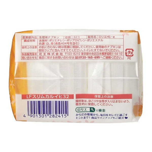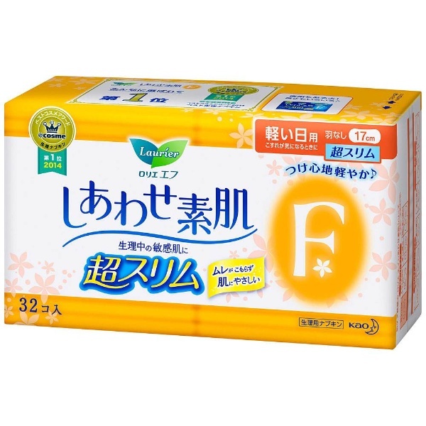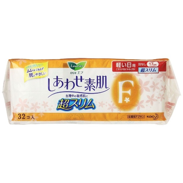 【ロリエ】 エフ しあわせ素肌超スリム 軽い日用 羽なし 32コ入〔サニタリー用品(生理用品)〕