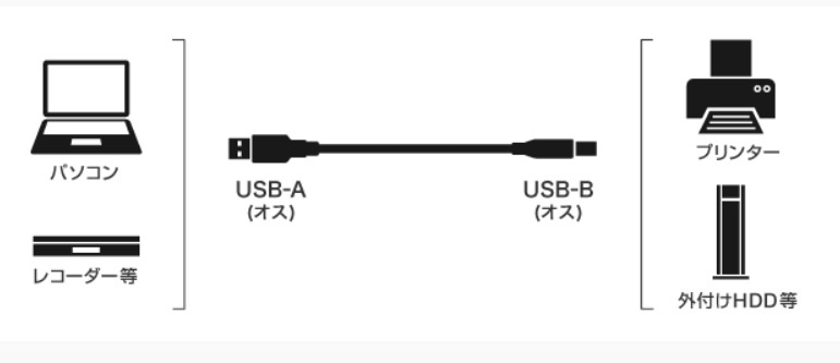 パソコンとプリンターやHDDをつなぐUSB2.0ケーブル。