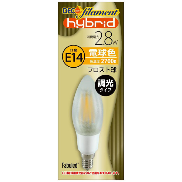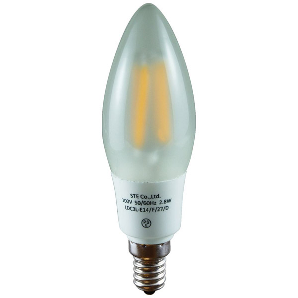 E14 LEDフィラメント形キャンドル球 電球色2700K 2.8W 調光対応 LDC3LE14F27D