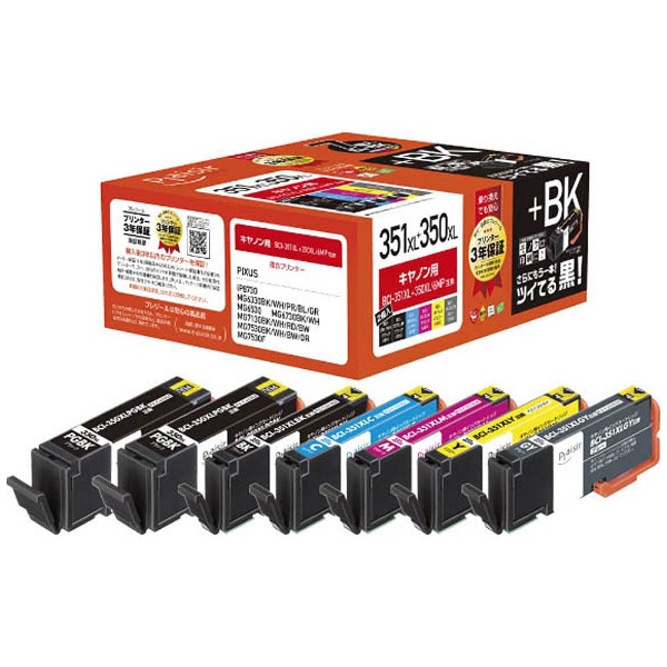 | 商品名 | 【互換】 PLEC351XL6P+BK (キヤノン BCI-351XL+350XL/6MP対応 互換インクカートリッジ/6色BOXパック+顔料ブラック) |