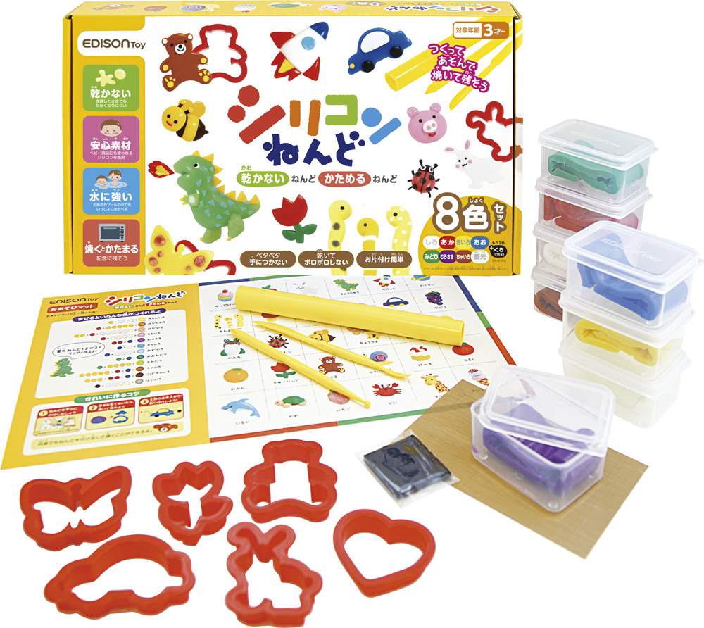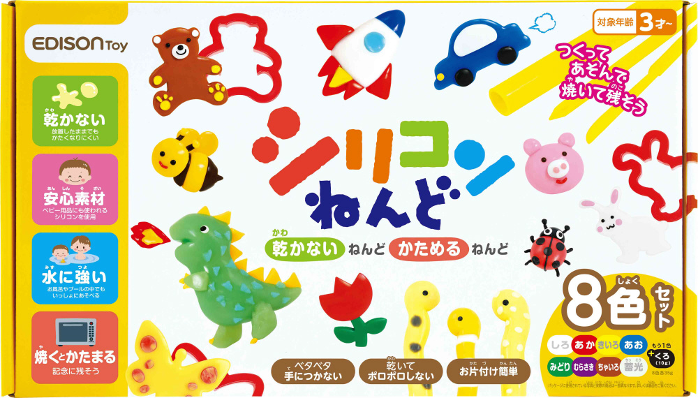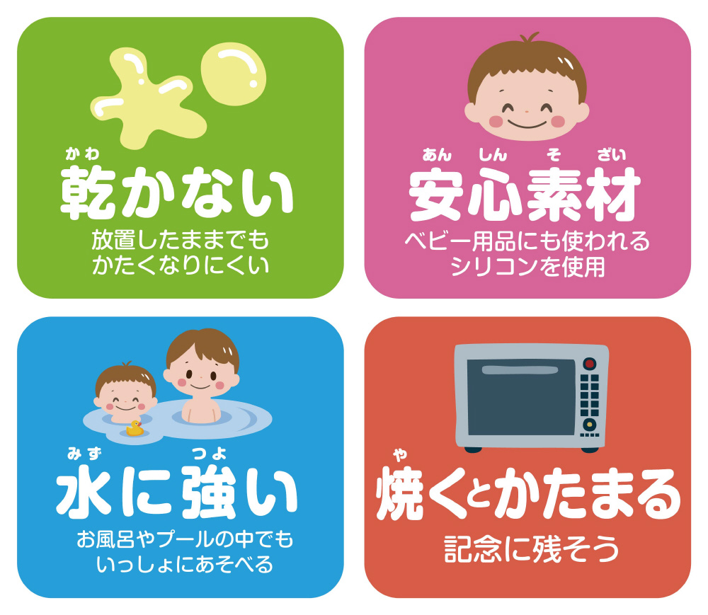 シリコーン素材を独自の特許技術で誰でも安心して使えるように開発した画期的素材のねんどです。