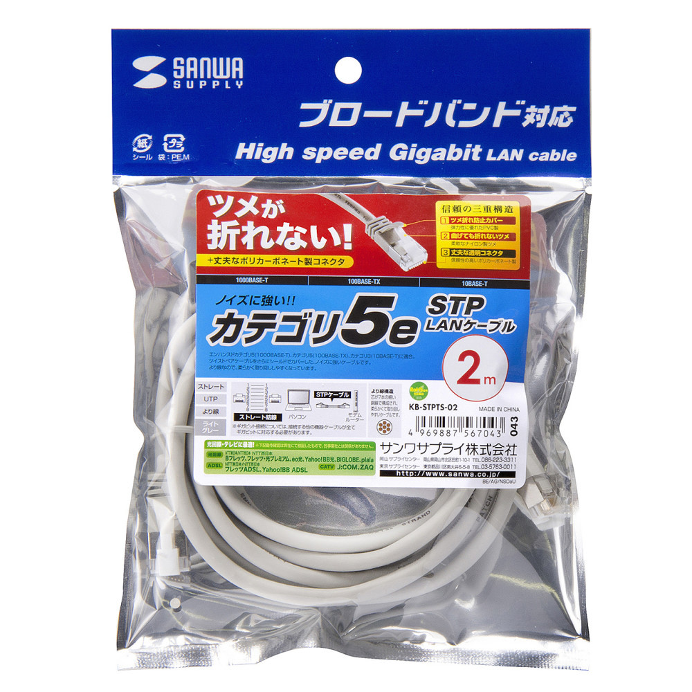 商品名 カテゴリー5e対応 STP LANケーブル ギガビットイーサネット対応 (ライトグレー・2.0m) KB-STPTS-02