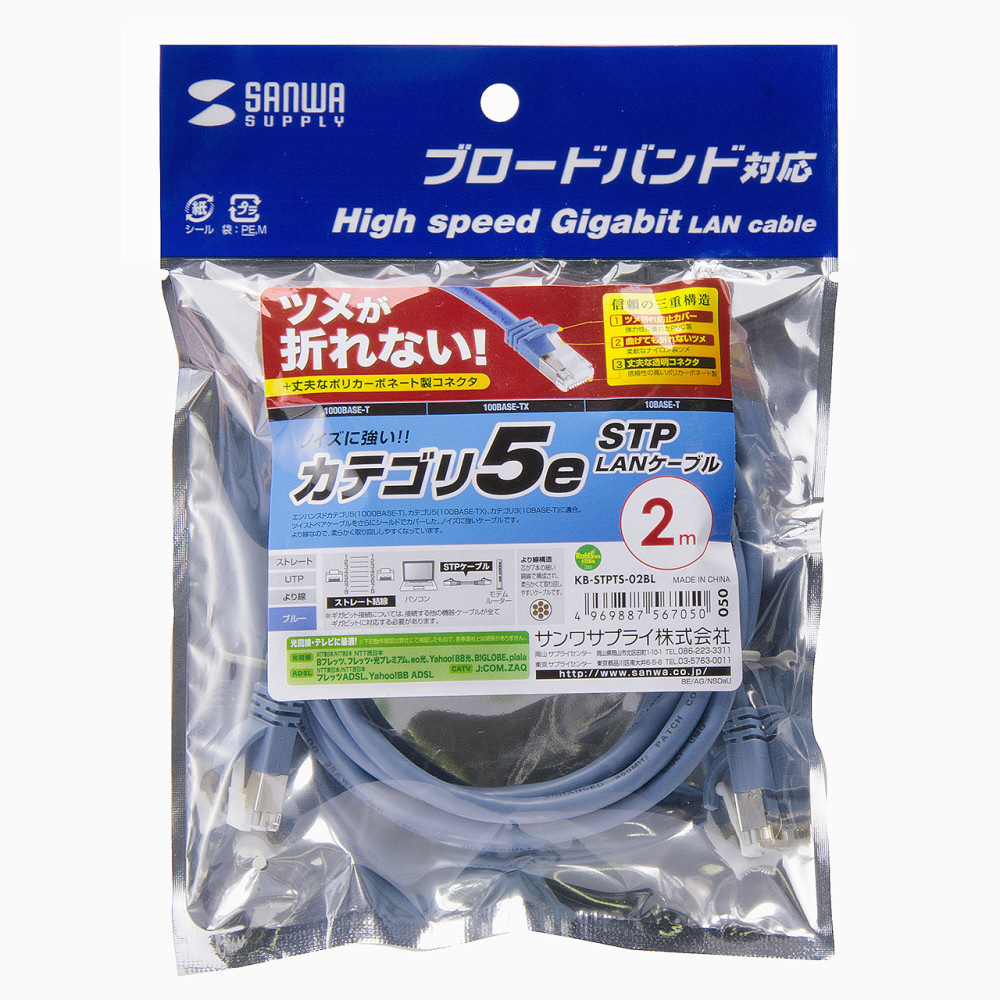 | 商品名 | カテゴリー5e対応 STP LANケーブル ギガビットイーサネット対応 (ライトブルー・2.0m) KB-STPTS-02BL |