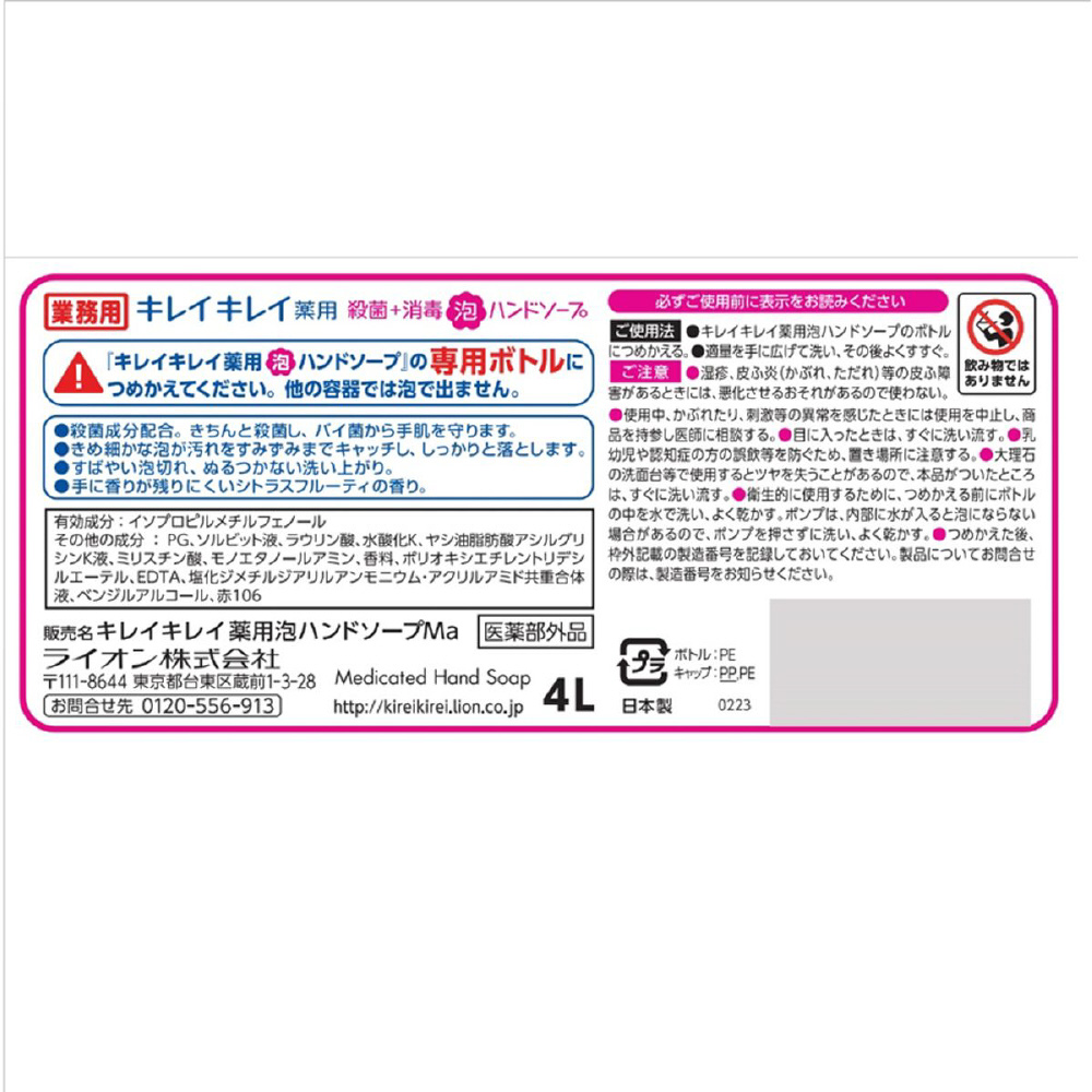 キレイキレイ 薬用泡ハンドソープ 4L〔ハンドソープ〕