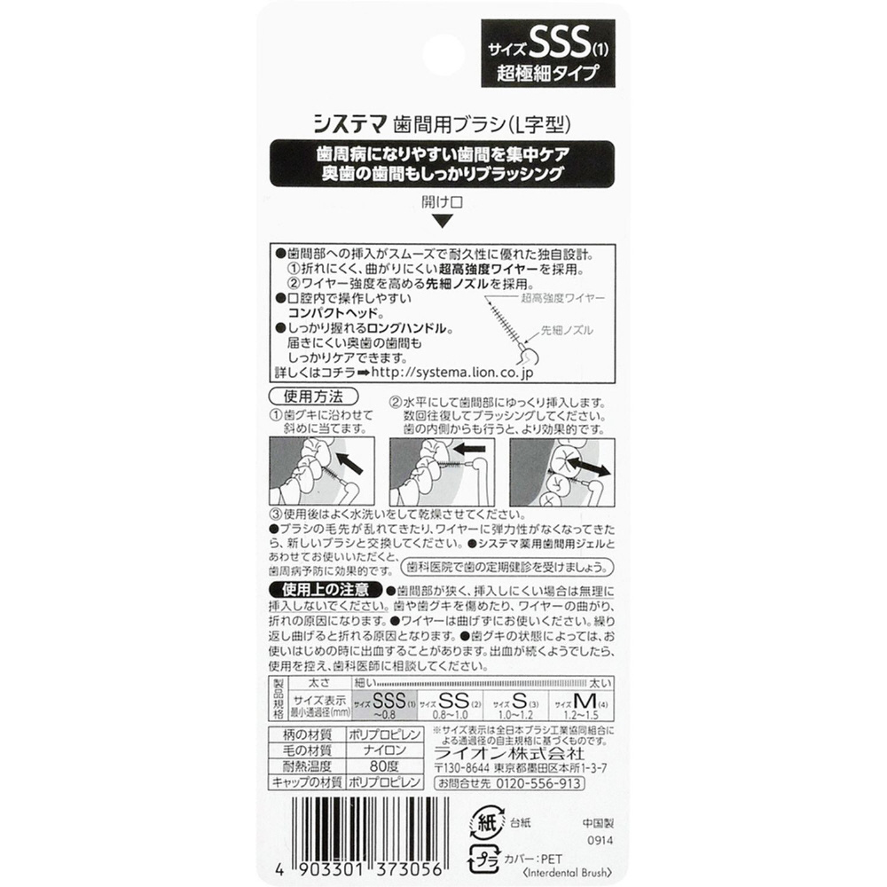 歯周病になりやすい奥歯の歯間もしっかりケアできる、L字型ロングハンドルの歯間用ブラシ。SSSサイズ。