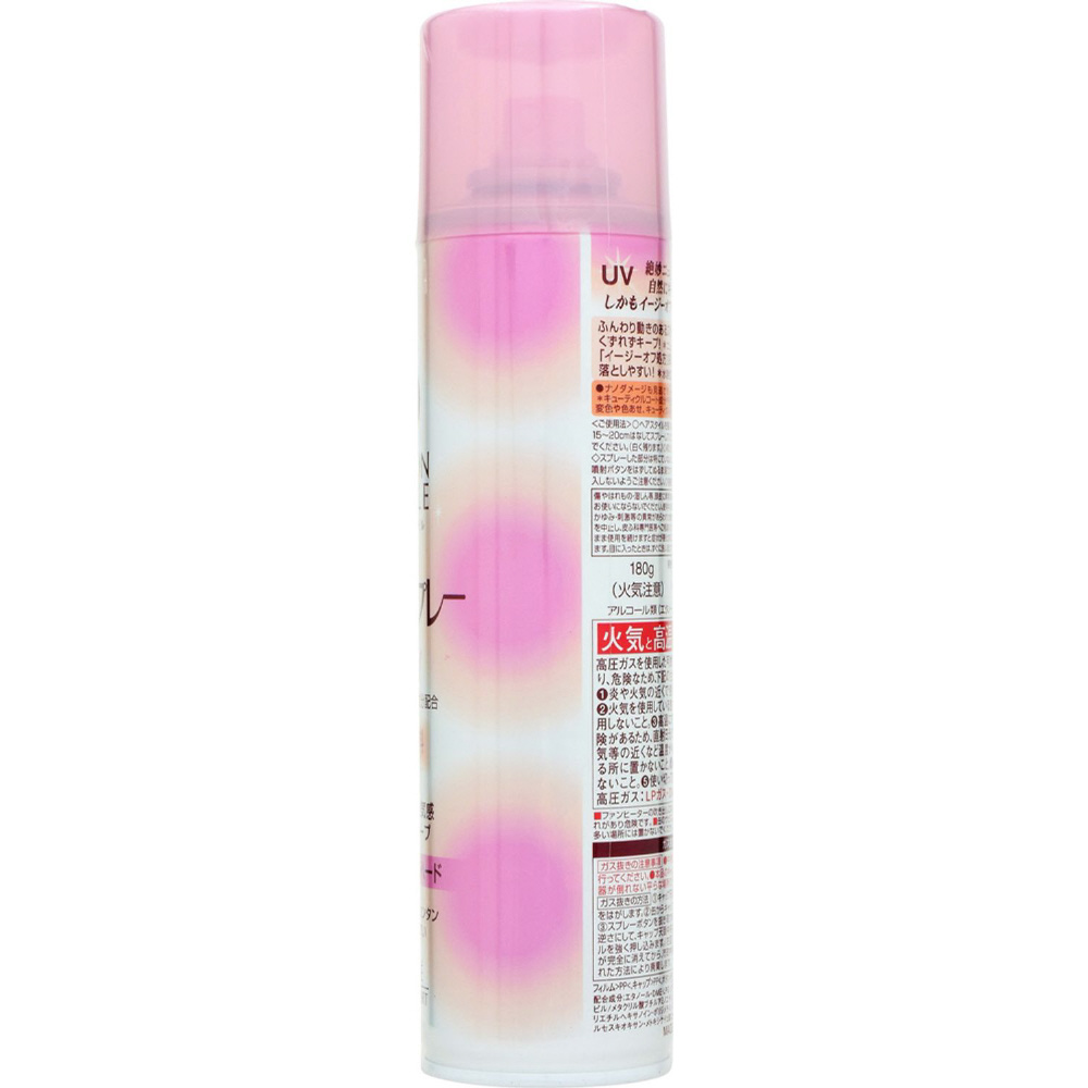| 成分 | エタノール・DME・LPG・(オクチルアクリルアミド/アクリル酸ヒドロキシプロピル/メタクリル酸ブチルアミノエチル)コポリマー・AMP・BHT・トリエチルヘキサノイン・ポリジメチルシロキサンPEG/PPG-24/19ブチルエーテルシルセスキオキサン・メトキシケイヒ酸エチルヘキシル・水添ロジン酸ペンタエリスリチル |