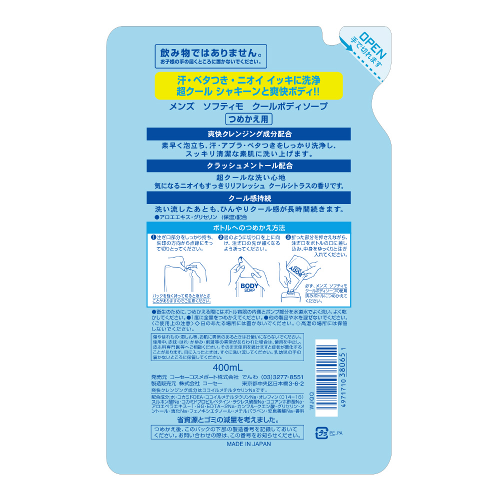 メンズソフティモ クールボディソープ クールシトラスの香り つめかえ用 400ml