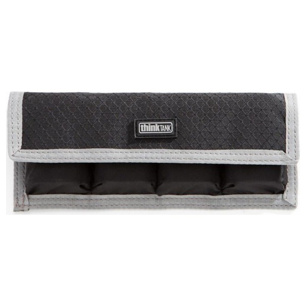 一眼レフ用バッテリーを最大4本収納できるホルダー「DSLR バッテリーホルダー 4」です。キヤノンEOS5D Mark3、70DやニコンD810、D700などのバッテリーに対応します。バッテリーを入れていない時は、薄く潰しておくことができ、場所を取りません。