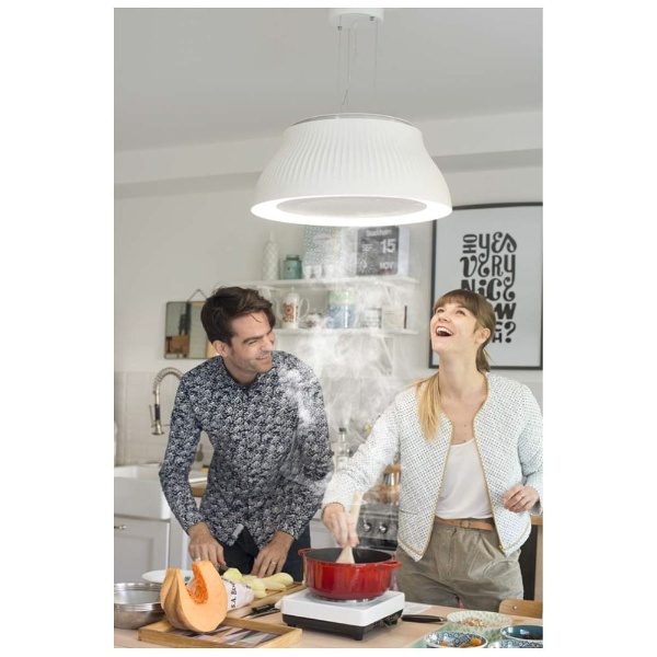 テーブルでの調理時に、気になる煙や油・ニオイを真上で吸い取り、空気をきれいにすることで部屋を汚れにくくしてくれる、新発想のダイニング照明です。