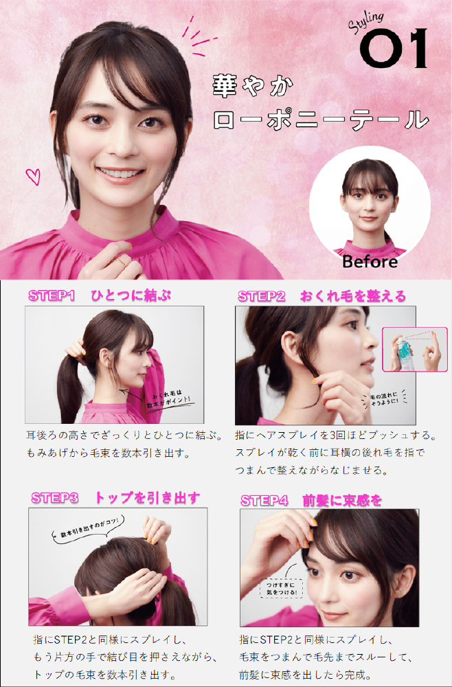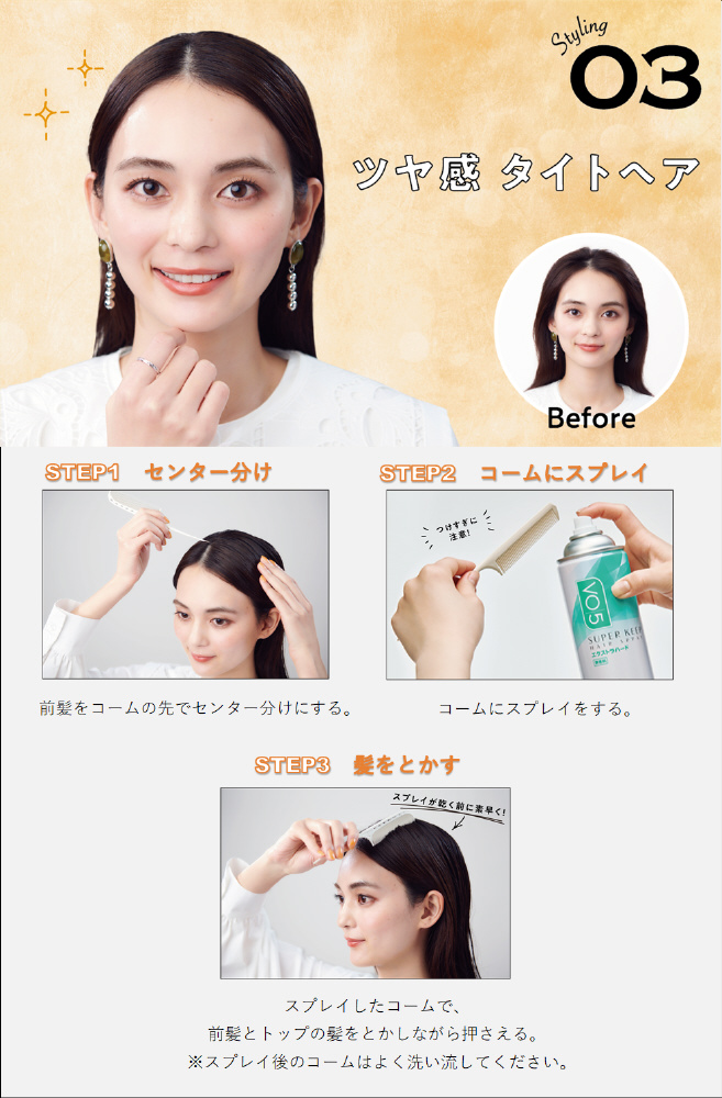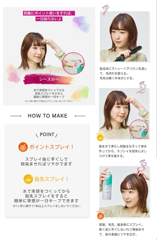 ヘアスタイルをしっかり固めてロングキープ。雨・風の日もくずれません。