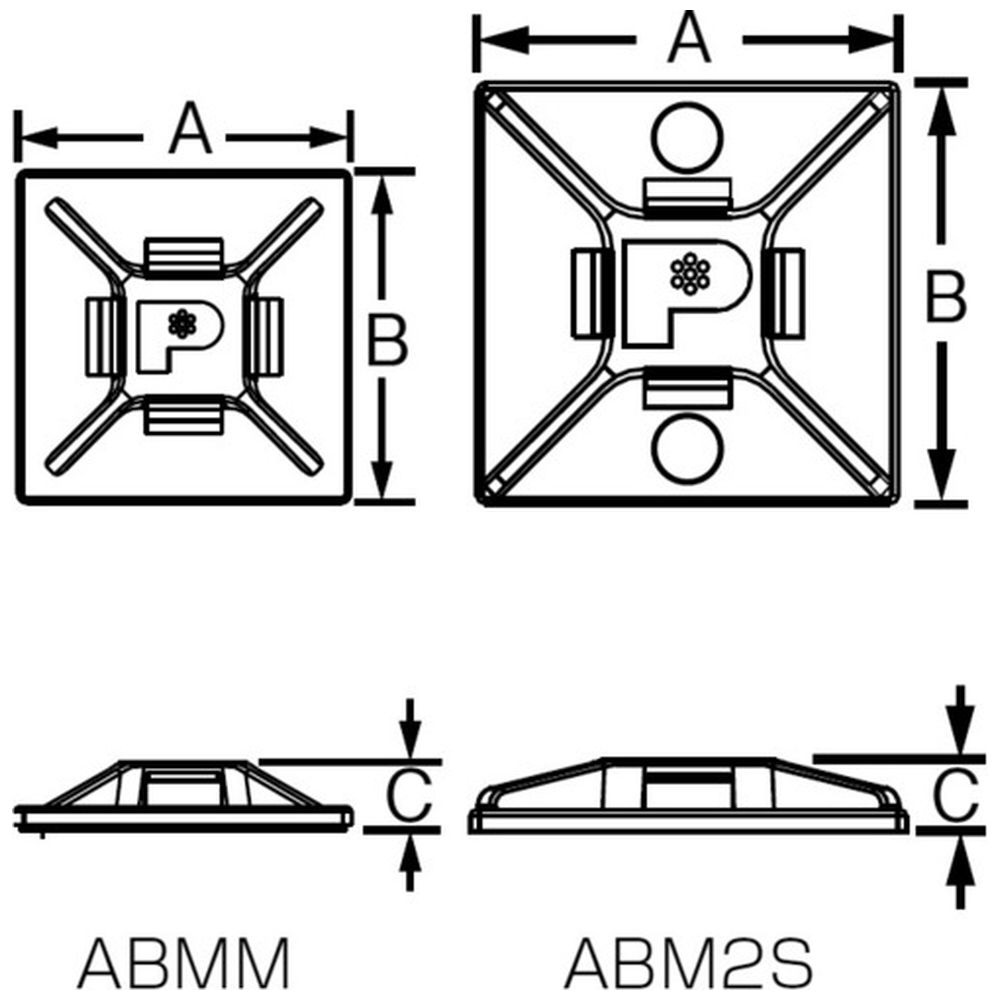 マウントベース アクリル系粘着テープ付き 耐候性黒 ABMMATC0