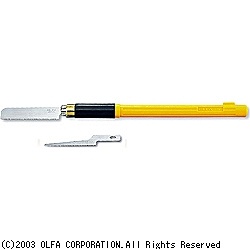 模型工作・手芸・細密な木工工作などに便利なクラフト専用細目のこです。手が滑らず疲れにくいラバーグリップ。直線切り用と引き回し用の2種類の刃が付属しています。