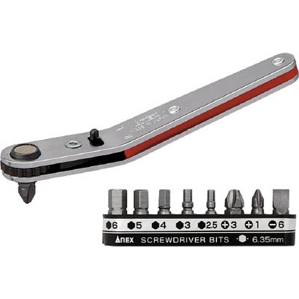 429 アネックス ベントアップヘッド型オフセットラチェットドライバー ビット9本組
