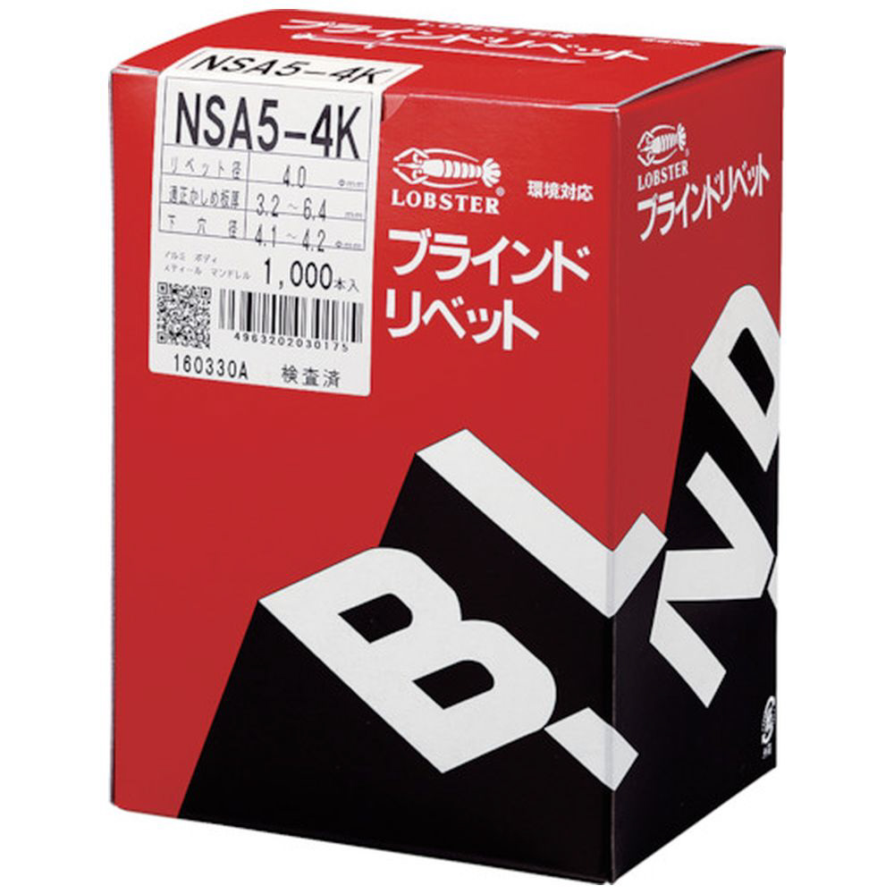 ブラインドリベット皿頭(1000本入) アルミ/スティール 5-4 NSA54K