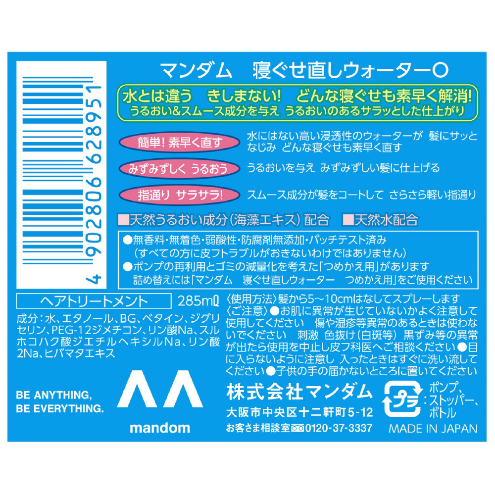 簡単、確実に寝ぐせを直し、さらっとした手触りの髪に仕上げる寝ぐせ直しウォーター。