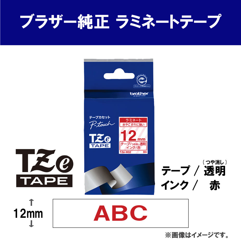 ブラザーラベルライターP-touch用スペアテープ(赤文字/透明(つや消し)テープ/12mm幅)