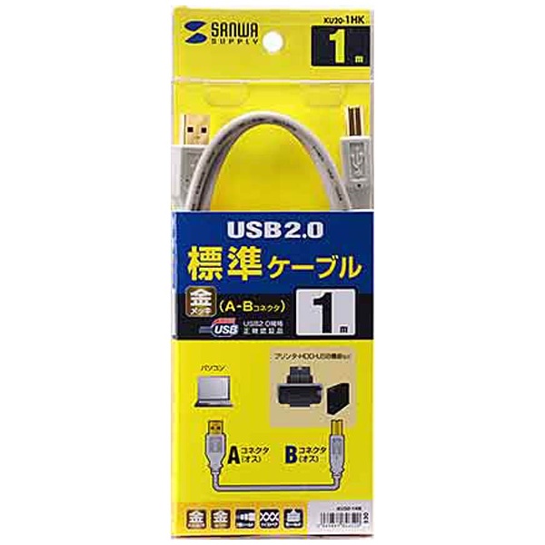 1.0m[USB-A ⇔ USB-B]2.0ケーブル 転送 ホワイト KU20-1HK