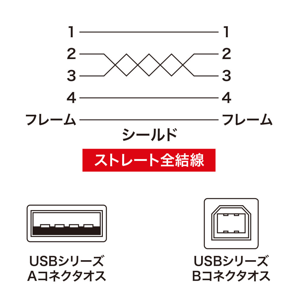 (「シリーズA」コネクタを持つ機器と「シリーズB」コネクタを持つ機器とを接続します)