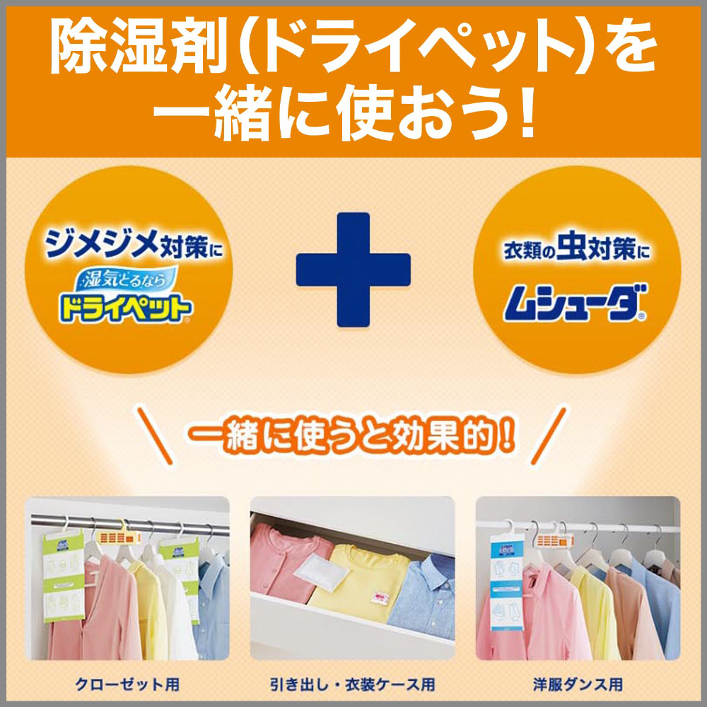 ●防虫成分が1年間安定した効果を発揮し、大切な衣類を虫から守ります。