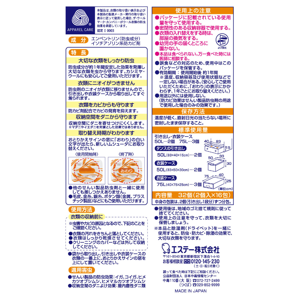 ムシューダ1年 引き出し・衣装ケース用 32個
