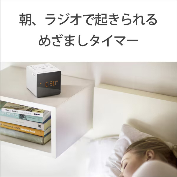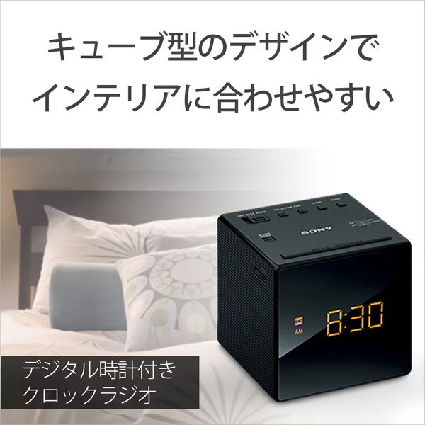 シンプルなキューブ型のデザインでインテリアにも合わせやすいクロックラジオ