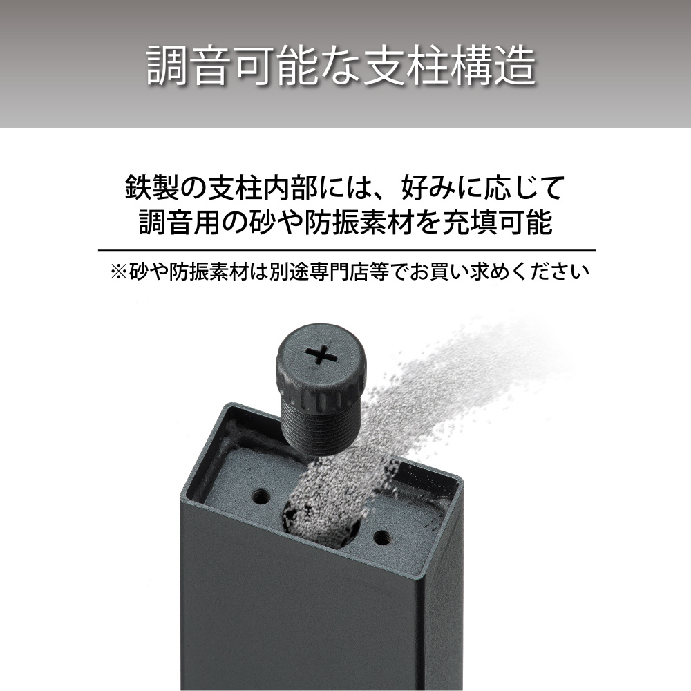 支柱内部には好みに応じて調音用の砂等、防振素材を充填可能