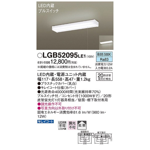 【要電気工事】 壁・棚下直付型LED流し元灯 (980lm・FL20W相当) LGB52095LE1 昼白色