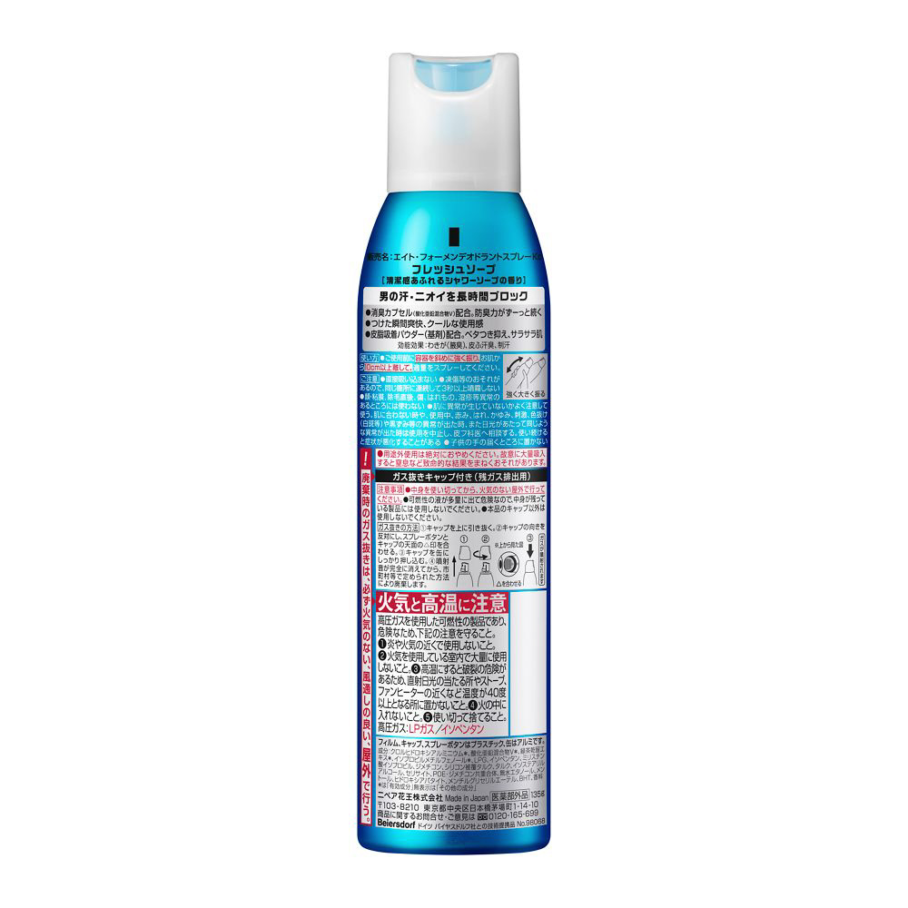 【8x4(エイトフォー) 】メン デオドラントスプレー フレッシュソープの香り (135g)〔デオドラント〕