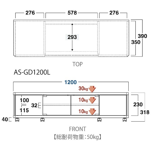| 商品名 | 〜52V型対応テレビ台 AS-GD1200L ロータイプ |